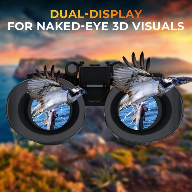 • The 4K night vision binoculars are built with dual 1.4" 390 * 390 TFT screens, with 7 adjustable brightness levels. Equipped with stunning naked-eye 3D display technology, the night vision goggles faithfully restore the lifelike three-dimensional scenes your eyes see. Your bird-watching or wildlife observation will be more immersive and clearer than ever before.