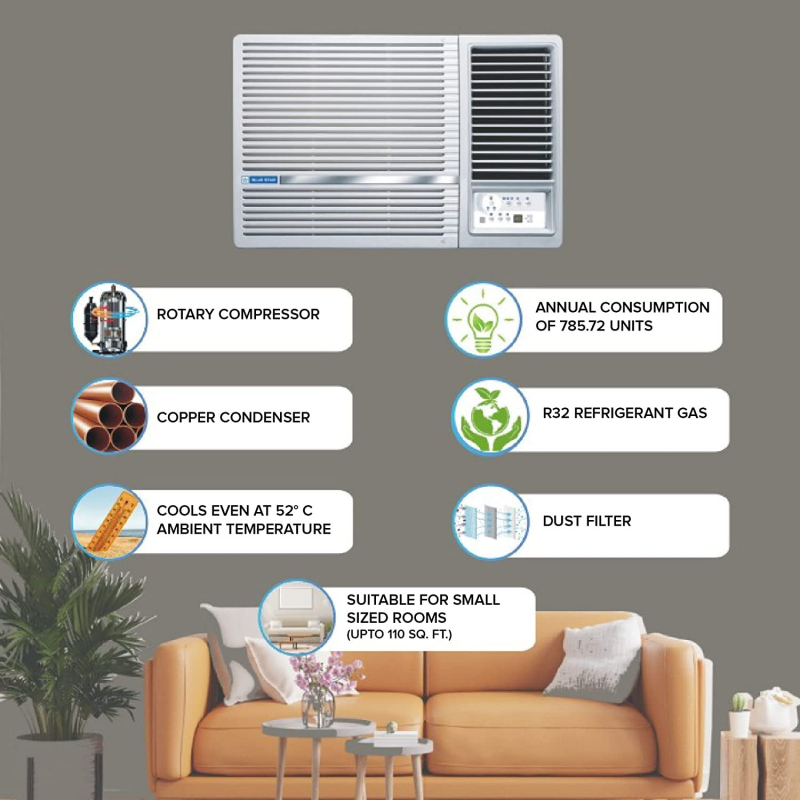Blue Star 1 Ton 3 Star Window AC - White (WFA312LL, Copper Condenser)