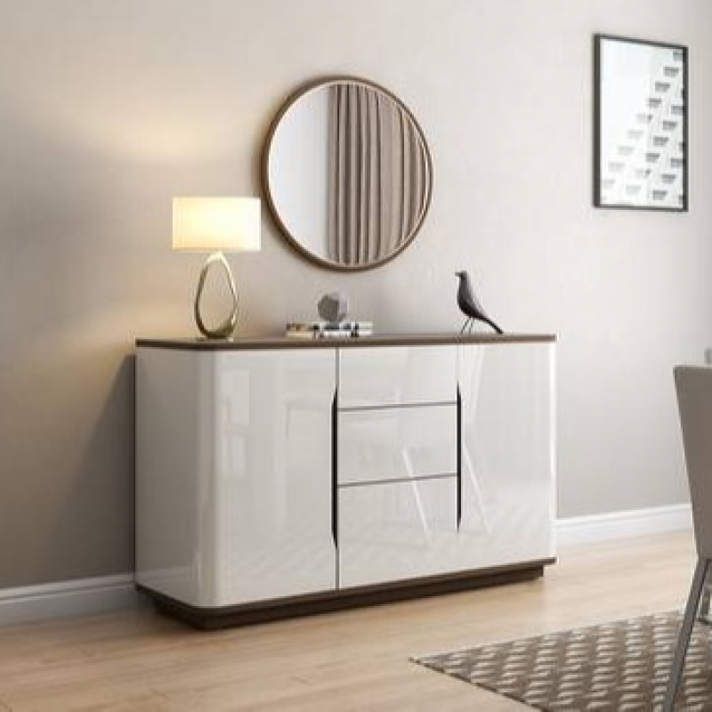 A delight in white. The Baltoro sideboard is all neat, clean lines, and no fuss. The pristine whites and the walnut detailing give it an ethereal look. Three drawers and four shelves make room for your prized china. The walnut-finished table top serves as an elegant serving station. You’re all set - send out that dinner party invite!