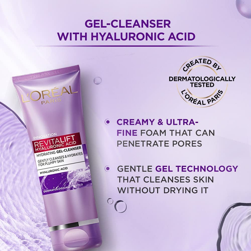 • Contents: 1x L'Oréal Paris Revitalift Hyaluronic Acid Hydrating Gel Cleanser, Volume: 100 ml