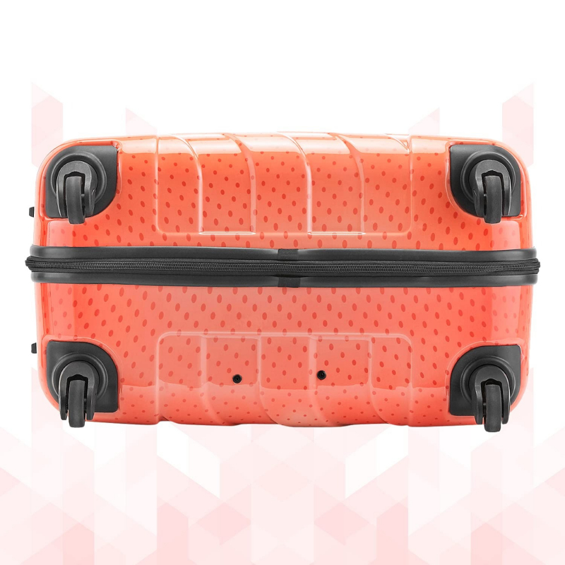 • FEATURES : Number of Wheels - 4, Number Lock, No of Compartments -2, Adjustable Trolley, Hard Case Printed Design Trolley