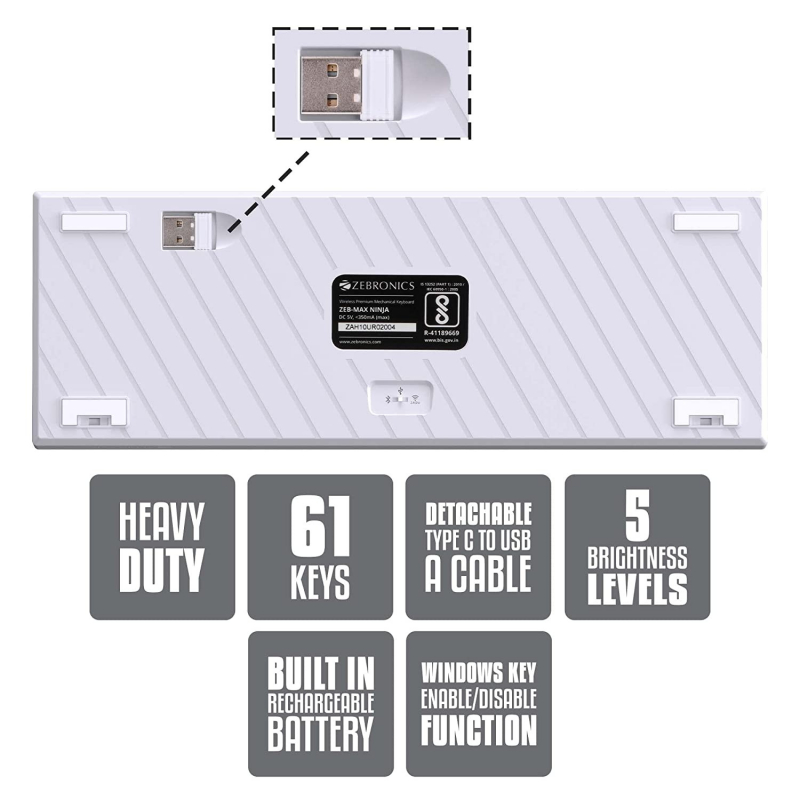 • Easily change modes from BT, wireless & wired, with the Mode toggle switch provided on the rear panel of the keyboard.