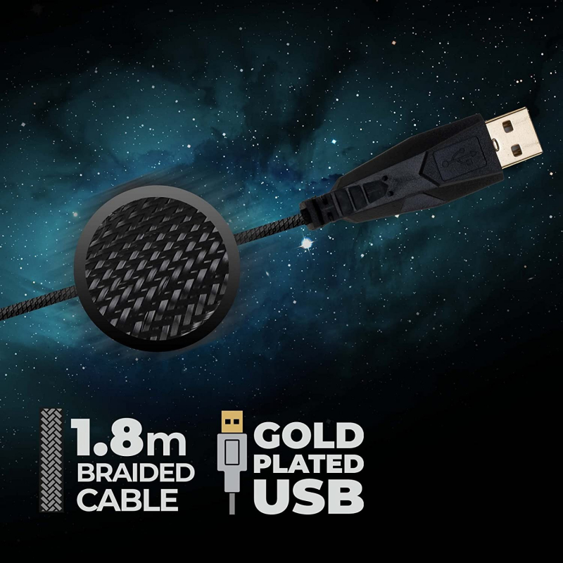 • Premium Gaming USB keyboard with ergonomic design and a textured plastic wrist rest. Highly durable, gold-plated USB connector with 1.8-meter long braided cable.