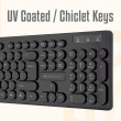 • Standard keyboard layout with 104 Keys and UV-coated keycaps (full size).